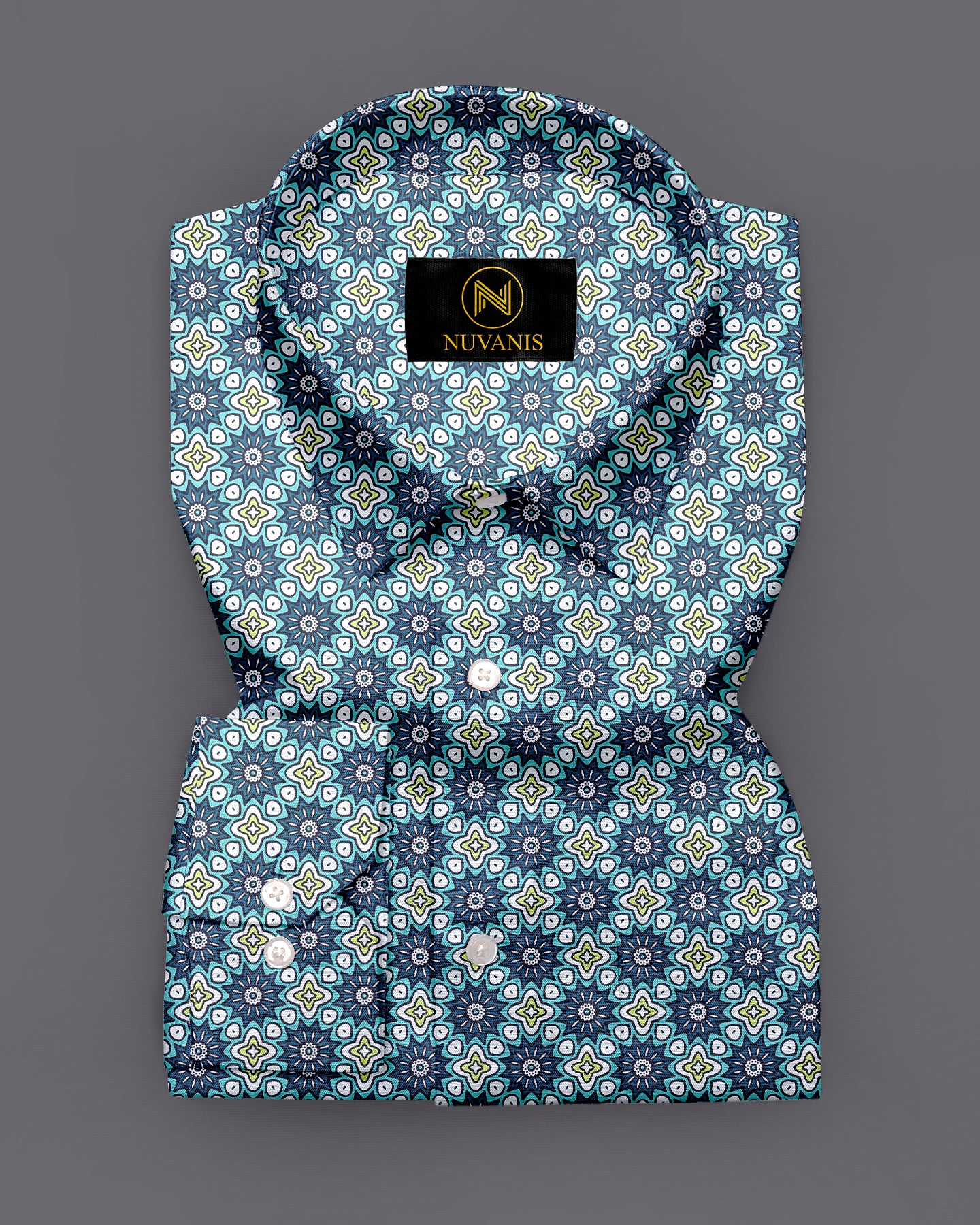 Blue Ethnic Pattern Printed Designer Full Sleeve Shirt